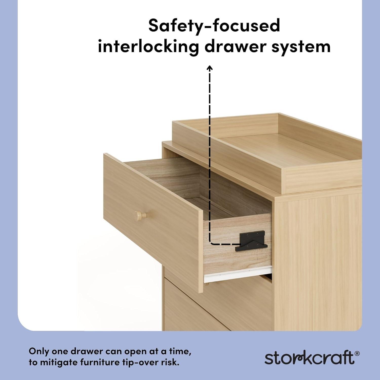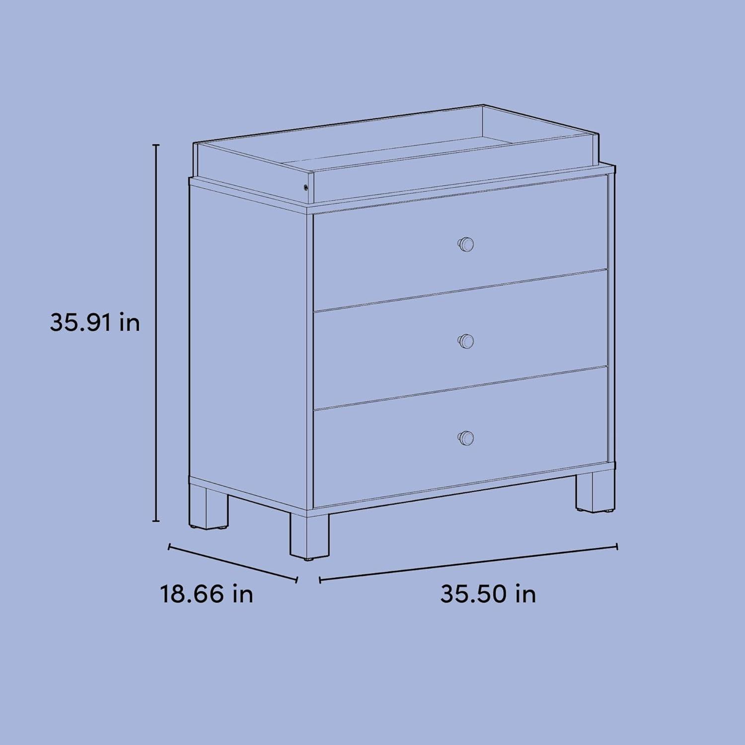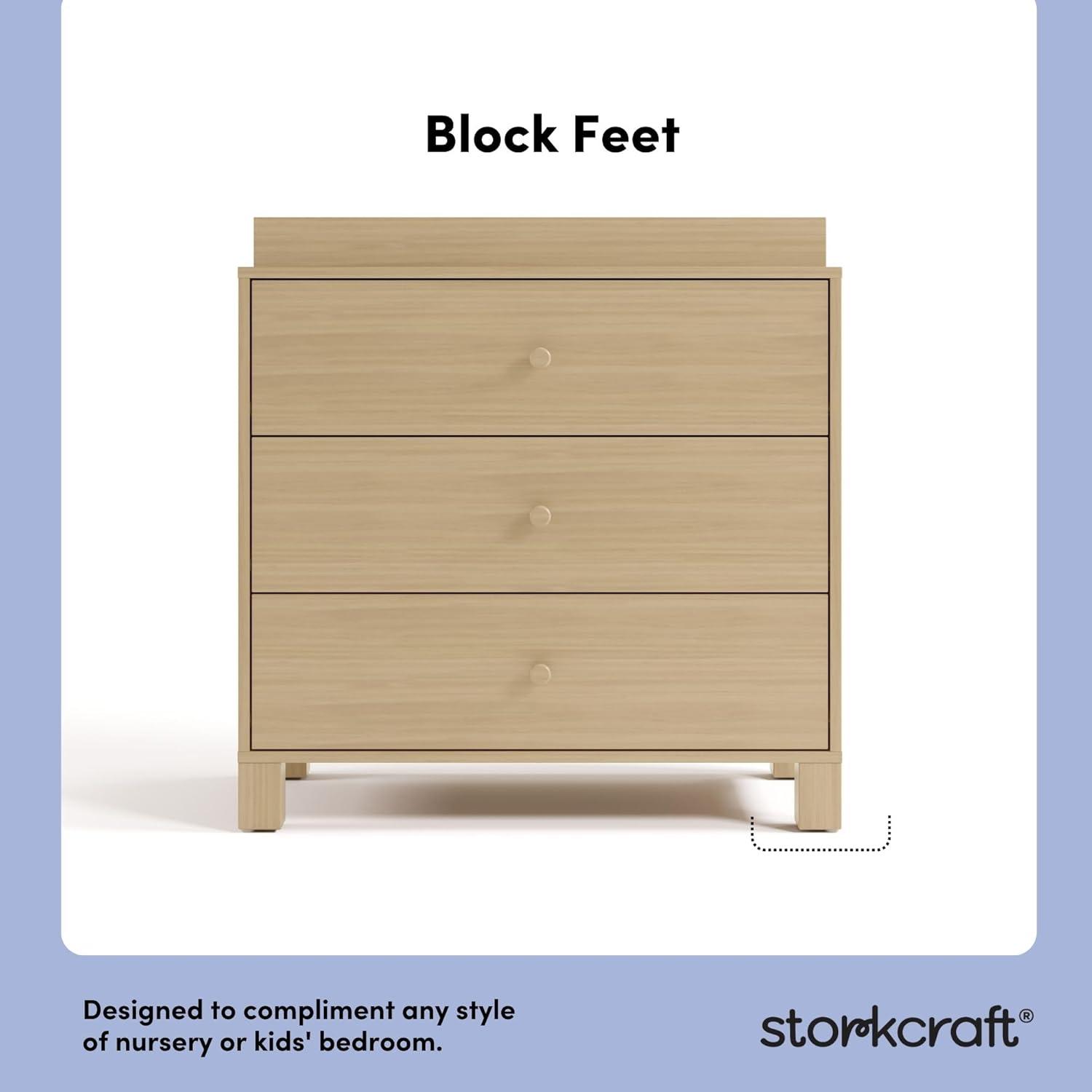 Introducing the Storkcraft California 3-Drawer Chest with Topper – the latest addition to our stylish signature Storkcraft California collection. This modern, minimalist chest is designed to complement any nursery or kids' bedroom with its clean lines, stylish block feet, and spacious drawers. Its sleek look ensures it blends seamlessly with a variety of décor styles, adding both charm and functionality. The California Chest features three roomy drawers for organizing essentials and comes with a removable changing topper that fits any standard-size baby changing pad (not included). Once your child outgrows the nursery stage, simply remove the topper, and it transitions into a modern 3-drawer chest that suits any room in your home, offering longevity and versatility far beyond the early years. For easy assembly, we’ve pre-installed the drawer tracks, ensuring a smooth, hassle-free, easy assembly experience. The innovative interlocking drawer system adds extra safety by allowing only one drawer to open at a time, minimizing the risk of tip-over when paired with the included furniture restraint kit. Safety is our top priority. The Storkcraft California Chest meets or exceeds ASTM and CPSIA safety standards, including the ASTM F2057 safety specification for clothing storage units. It is also GREENGUARD Gold Certified, ensuring it’s screened for over 10,000 chemicals and VOCs that can pollute indoor air. Storkcraft is a proud recipient of the Parent Tested Parent Approved (PTPA) Seal of Approval. Backed by a 1-year limited manufacturer’s warranty. Assembly required.