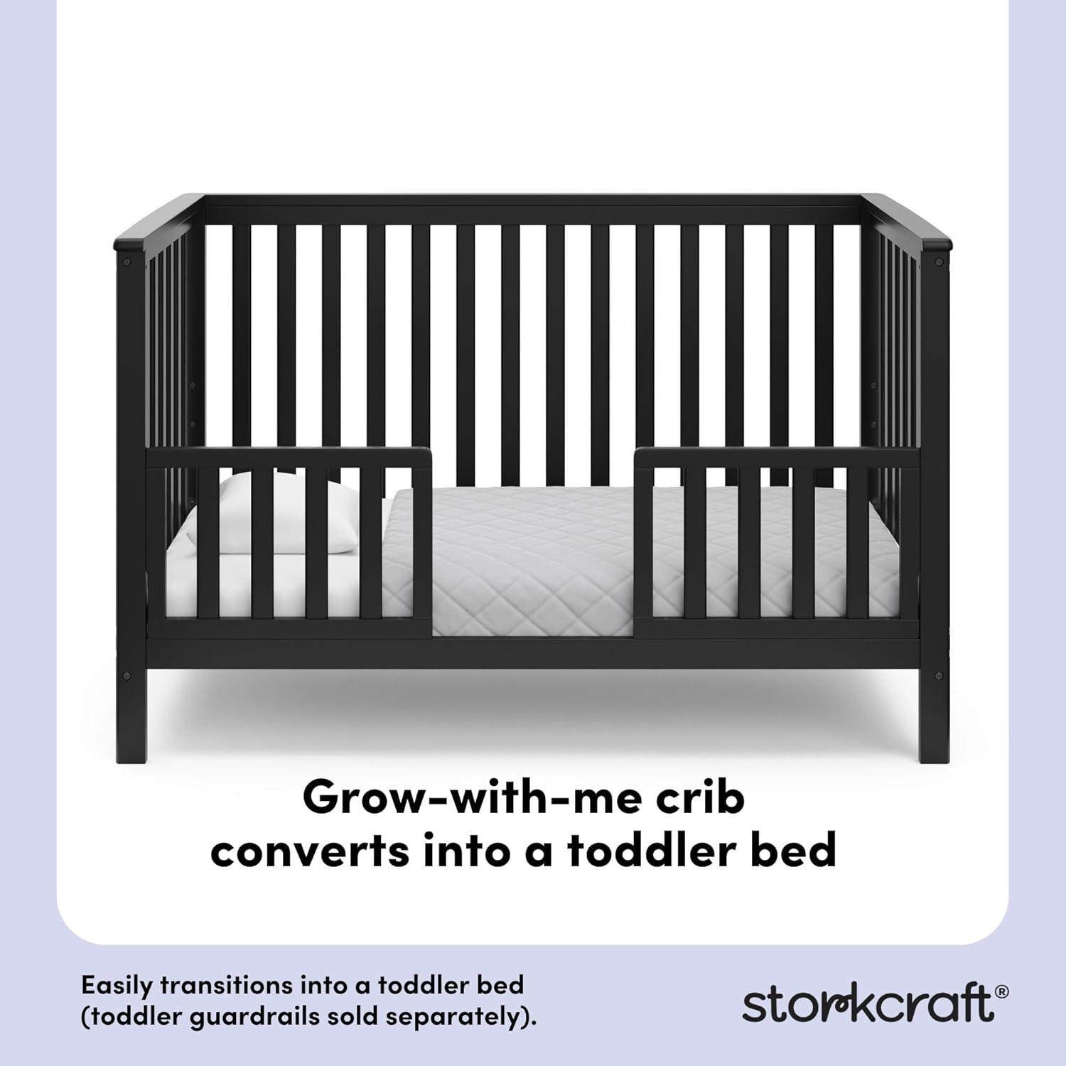Storkcraft Hillcrest 4-in-1 Convertible Crib (Natural) – Converts to Daybed, Toddler Bed, and Full-Size Bed, Fits Standard Full-Size Crib Mattress, Adjustable Mattress Support Base(Black)