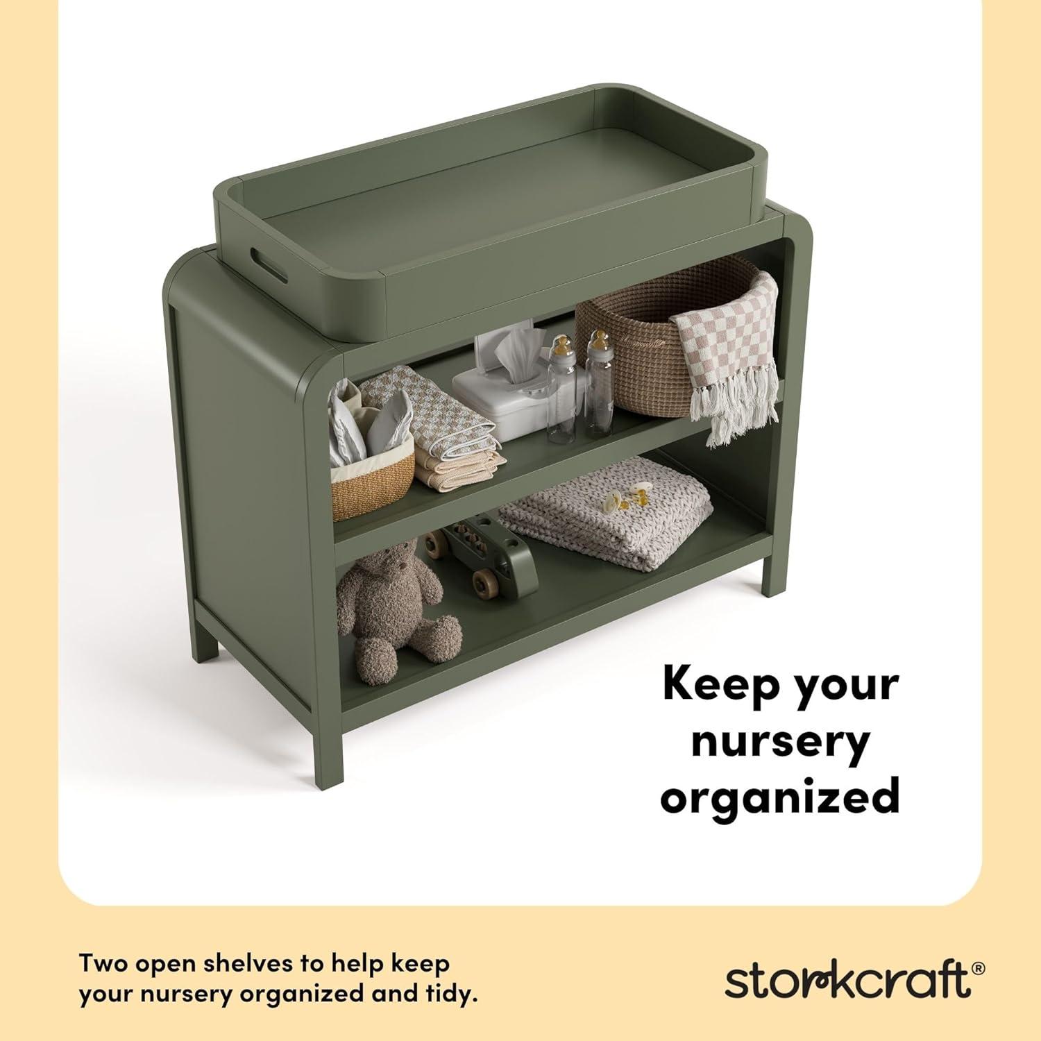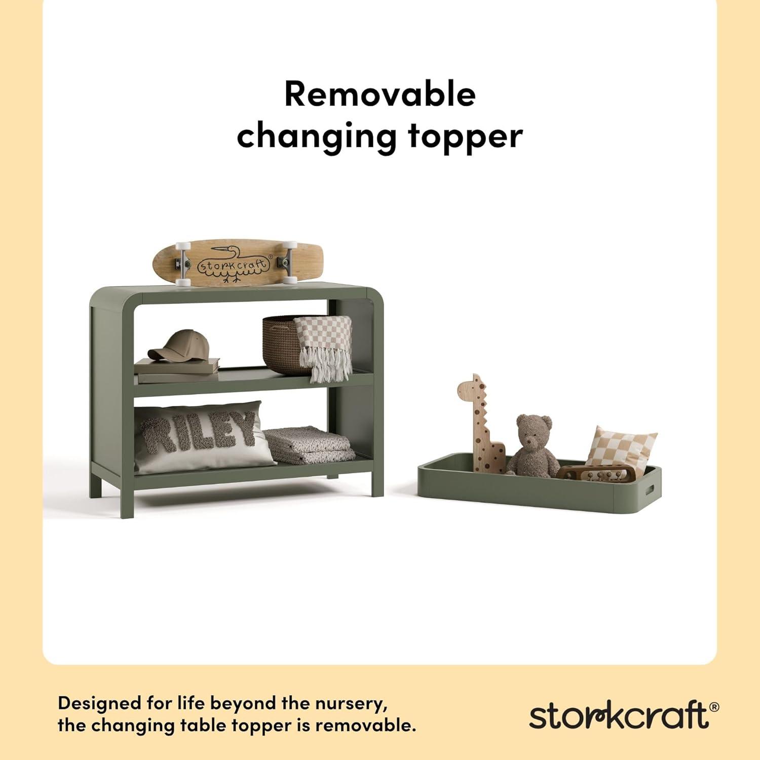 Storkcraft Santos Changing Table (Olive) – GREENGUARD Gold Certified Baby Changing Table, Solid Wood Changing Table for Baby, Removable Changing Topper Fits Standard-Size Changing Pad(Olive)