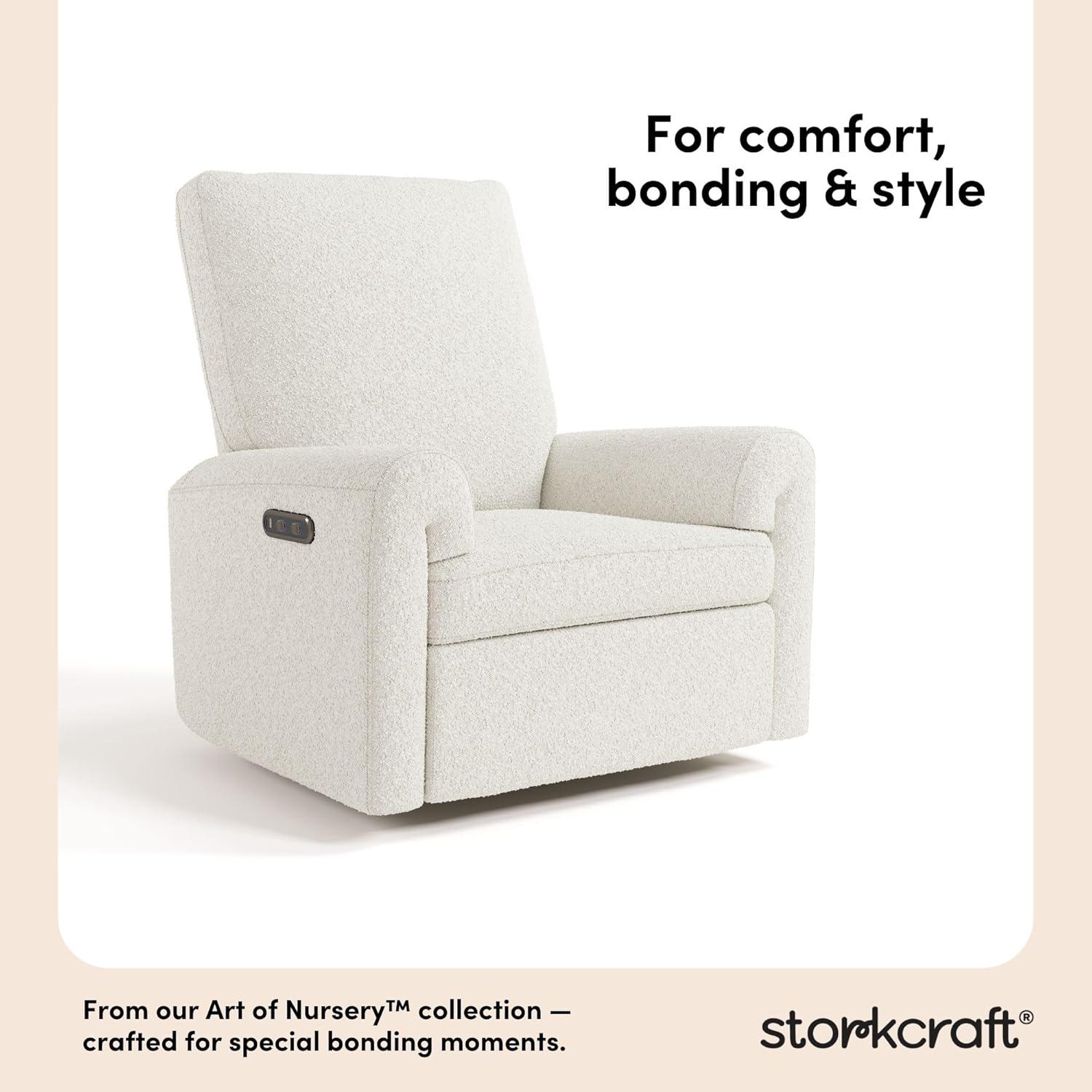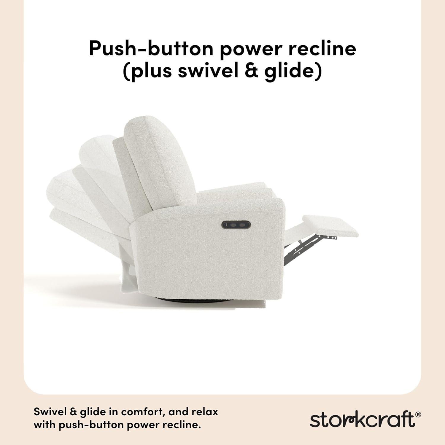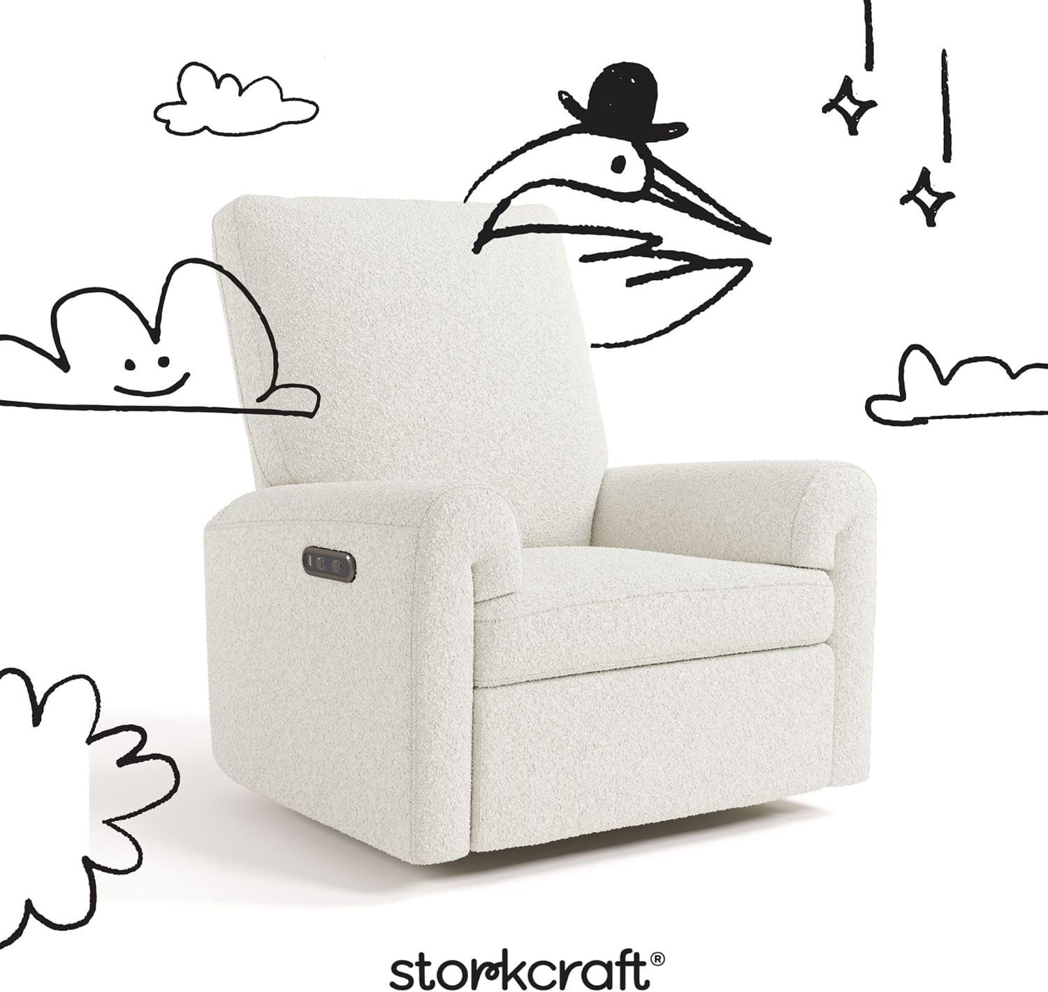 Storkcraft Sorrento Deluxe Power Recliner Swivel Glider (Ivory Basketweave) – Premium Electronic Power Recliner for Nursery, Includes Dual-USB Charging Port with USB-A & USB-C, Glider Rocking Chair(Ivory Boucle)
